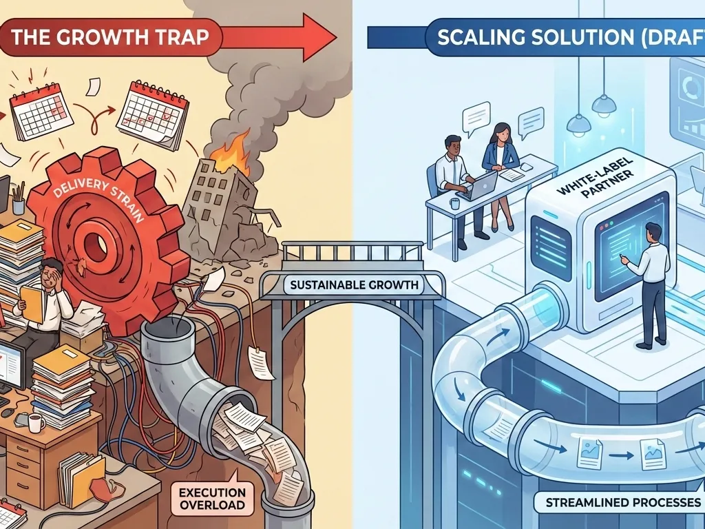 TL;DR Discover why chasing more clients can lead to chaos for agencies before they scale effectively. Explore delivery strain, execution overload, and the collapse of systems under increased volume. Learn how Draftss, as a white-label partner, helps manage workloads and streamline processes to ensure sustainable growth while balancing client demands.